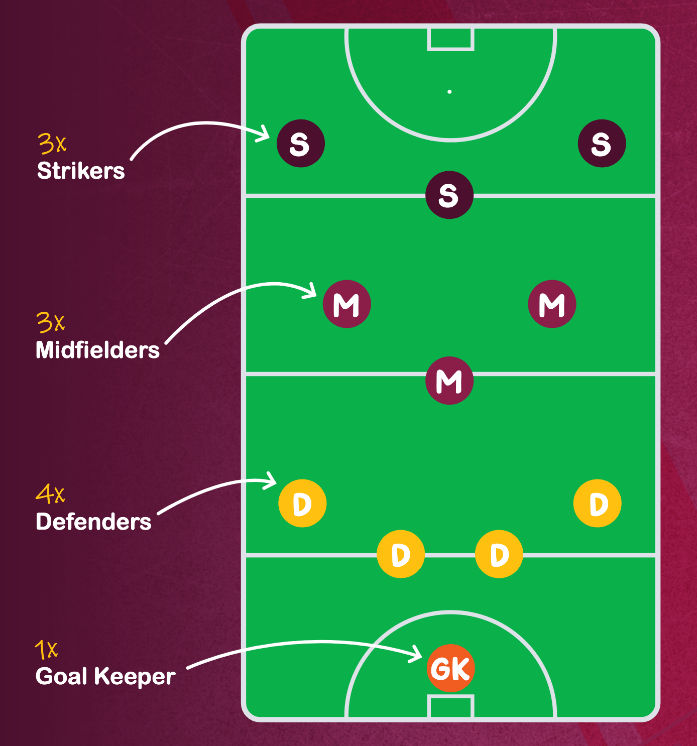 Also known as ‘Links’, these versatile players play both offense and defense. ‘Links’ are generally positioned between the forwards and the defenders and are mainly responsible for advancing the ball from the defense to the forwards so they can score.